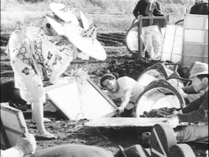 「黑澤明想要女演員眼睛看起來,好像老鷹盯著獵物」,為了導演心中的「閃光的眼睛」,演員的雙眼被鏡子照射到受傷的地步,導演還未必滿意。另一場戲則讓燈光師很滿意,就是片尾慶祝場女演員在田裡唱歌的鏡頭,短短一句臉上全是亮光,看的時候就很詫異那臉怎麼亮的像抬頭看太陽,原來是田裡的鏡子反照出來的。